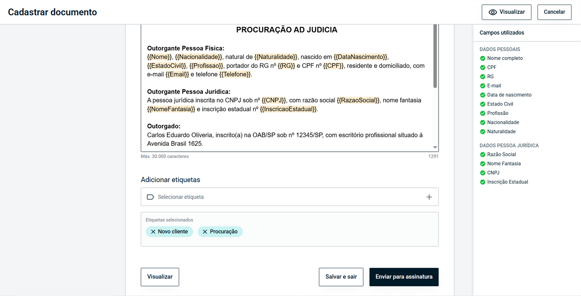 Com a automação do preenchimento de dados, a plataforma eliminou o risco de erros humanos em documentos críticos, garantindo a precisão e a validade jurídica.